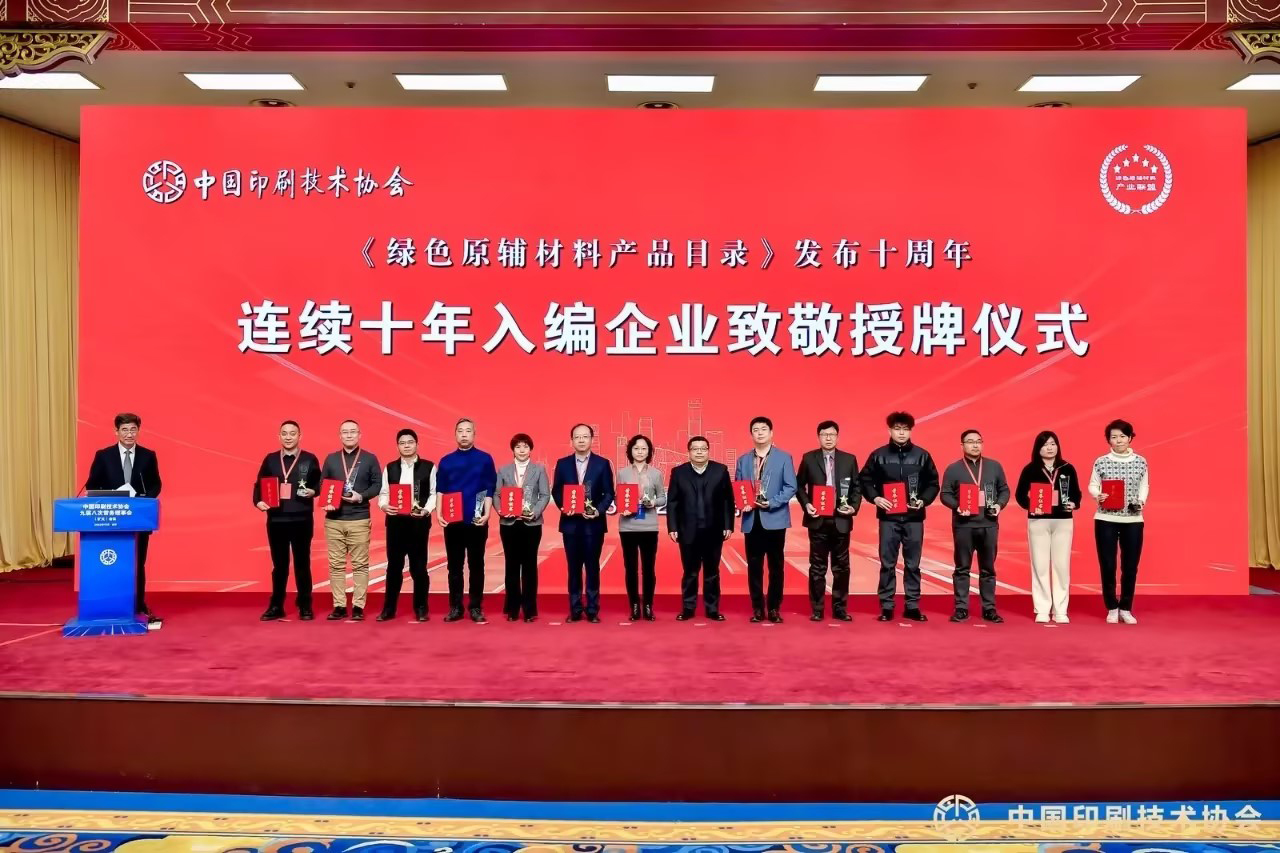 绿色造纸初心不改!金东连续十年入编《绿色原辅材料产品目录》近日,印刷业高质量发展学习交流暨《中国印刷》创刊40周年纪念活动在北京成功举办。会上,中国印协和《中国印刷》杂志社为连续十年入编《绿色原辅材料产品目录》企业授牌,中国印刷技术协会副秘书长、《中国印刷》杂志社社长刘积英为获此殊荣的金东纸业(江苏)股份有限公司等17家合作单位授予荣誉证书和奖杯,金东技术质量管理部经理江达作为协会常务理事代表公司出席参会并上台领奖。《绿色原辅材料产品目录》是印刷业内首本针对原辅材料产品的纸质印刷工具手册,经过十年发展,《目录》共收录了10大类数千余种绿色原辅材料产品信息,持续完善收录产品品类和参照的标准体系,丰富了发布渠道,并更加贴合印刷企业的实际需求。金东作为自2014年已连续10年入编的企业,面对印刷行业绿色发展道路中的“新形势、新要求”,积极倡导绿色印刷,践行环保发展理念,